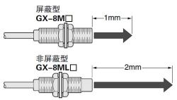 非屏蔽型(GX-8ML□)與屏蔽型(GX-8M□)相比,盡管大小相同但檢測(cè)距離增加2倍,且不易受檢測(cè)距離變動(dòng)影響。
